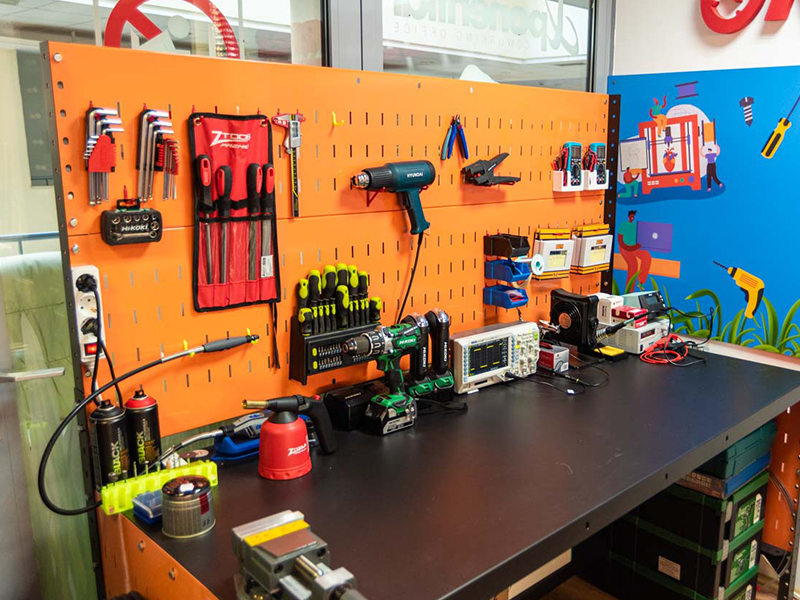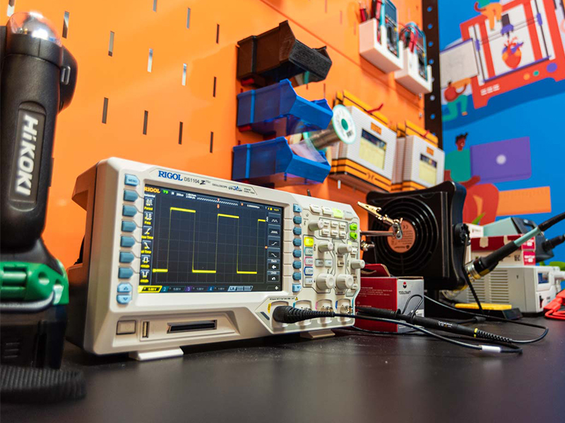 Multiméter, oszcilloszkóp, forrasztó állomás, tápegység, hőlégfúvó, rasberry pi, próba panel (wish board) és még rengeteg más kéziszerszám!